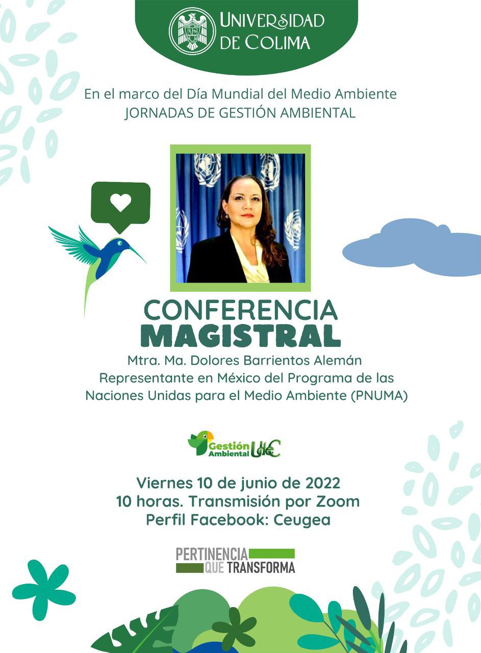 El viernes 10, a las 10 de la mañana, se tendrá la conferencia principal a cargo de la Mtra, Dolores Barrientos Alemán, quien se desempeña como representante en México del Programa de las Naciones Unidas para el Medio Ambiente (PNUMA).