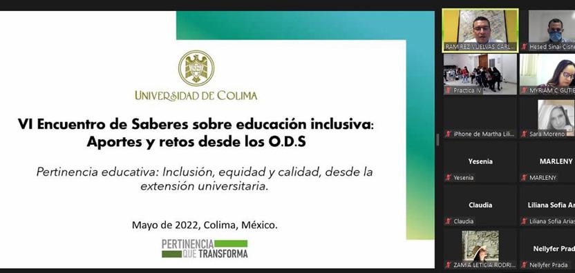 Invitado a través de la Dirección General de Relaciones Internacionales y Cooperación Académica de la Universidad de Colima, el doctor Carlos Ramírez Vuelvas, coordinador general de Extensión, participó en el VI Encuentro de Saberes sobre Educación Inclusiva: aportes y retos desde los Objetivos del Desarrollo Sostenible (ODS), organizado por la Universidad Iberoamericana de Colombia.