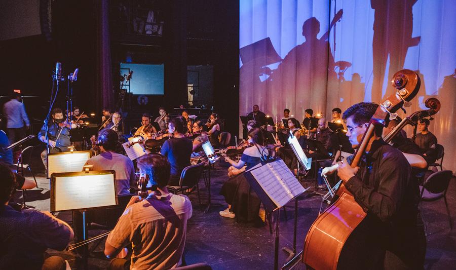 que comenzó su repertorio con Cinema Paradiso, de Ennio Morricone. Sobre el fondo del escenario se proyectó el videomapping diseñado por la artista visual Daniela Gounds, egresada del Instituto Universitario de Bellas Artes (IUBA).