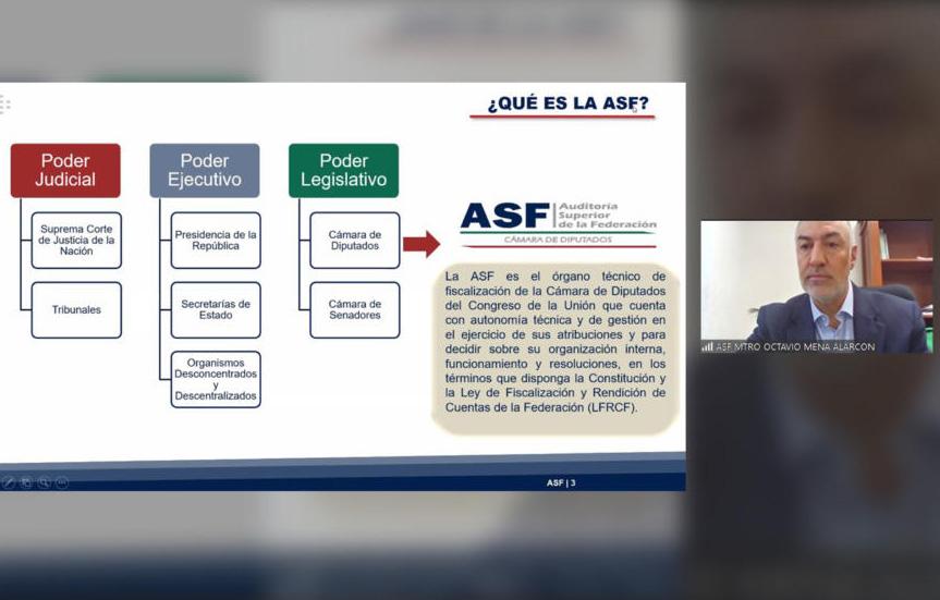 Posteriormente, Octavio Mena Alarcón, director general de auditoría a los recursos federales transferidos “B” de la Auditoría Superior de la Federación (ASF) presentó la conferencia “Reglas para el ejercicio del programa U006 para universidades públicas estatales y su fiscalización”, en la que recordó que la ASF es un