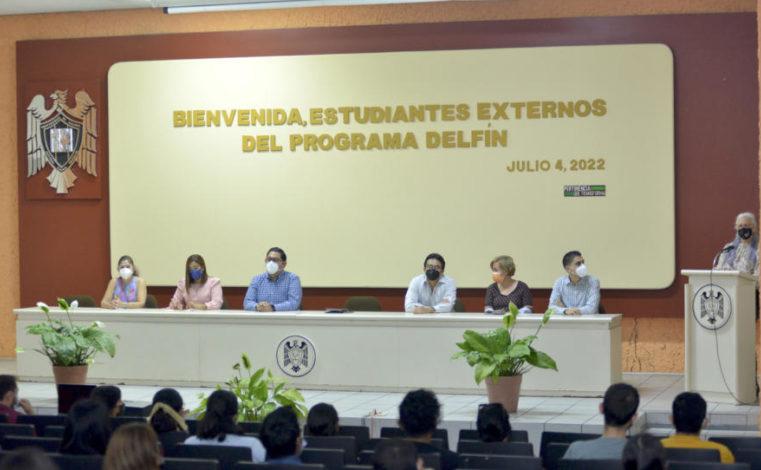 En evento realizado en el auditorio de la Biblioteca de Ciencias de la Universidad de Colima, la doctora Xóchitl Angélica Trujillo Trujillo, coordinadora general de Investigación, dio la bienvenida a los 111 estudiantes que solicitaron realizar su estancia de investigación en esta Casa de Estudios, como parte del programa Delfín, creado en 1995 para fortalecer el desarrollo de la investigación y el posgrado en el país.