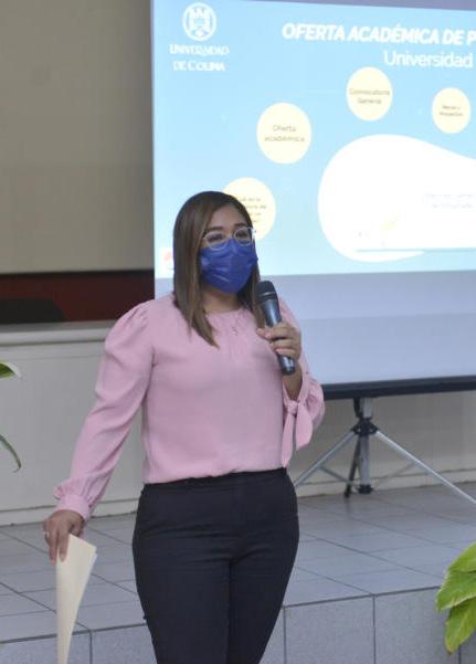 En ese sentido, la doctora Arianna Sánchez Espinoza, directora general de Posgrado, les habló a las y los estudiantes provenientes de instituciones públicas de educación superior del país y de Colombia, sobre la gran oferta de posgrados con la que cuenta la UdeC, destacando los 44 programas en este nivel, de los cuales 19 están reconocidos por el Sistema Nacional de Posgrados.