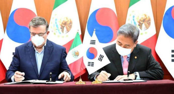 El canciller mexicano subrayó que los intercambios económicos entre ambas partes crecen año a año y que actualmente el volumen de intercambio comercial se sitúa en torno a los 25 mil millones de dólares, con una inversión surcoreana acumulada en México de unos 8 mil millones de dólares.