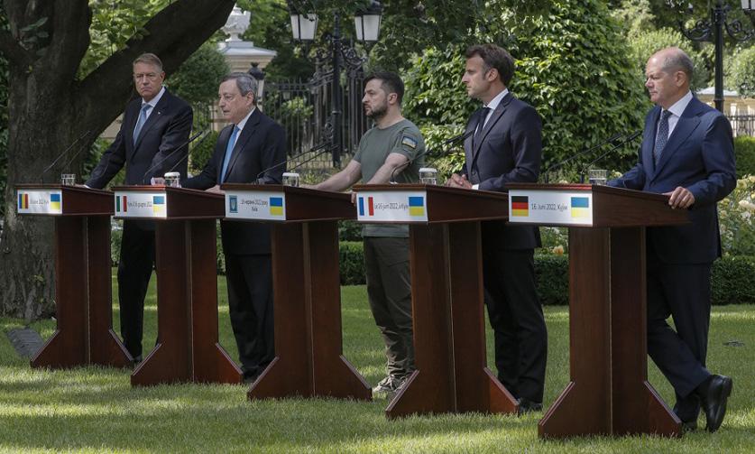 Los jefes de Gobierno de Alemania, Francia, Italia y Rumanía anunciaron este jueves su apoyo a que Ucrania reciba el estatus de país candidato a integrarse en la Unión Europea (UE), en una visita conjunta a Kiev inédita desde la invasión rusa del pasado 24 de febrero.