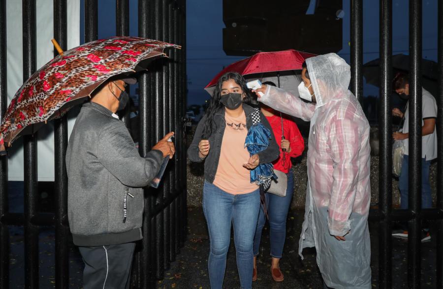 Como el año pasado, la aplicación del examen se dividió en dos días y en cuatro jornadas, para cuidar al máximo la salud de las y los jóvenes, al admitir en cada aula a un grupo reducido de aspirantes.