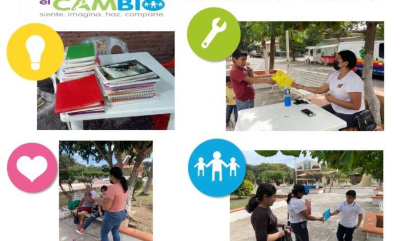 Somos el Cambio, con un proyecto para reutilizar las hojas limpias de los cuadernos usados y elaborar libretas, que distribuyeron entre las niñas y los niños de escasos recursos de dicho municipio.