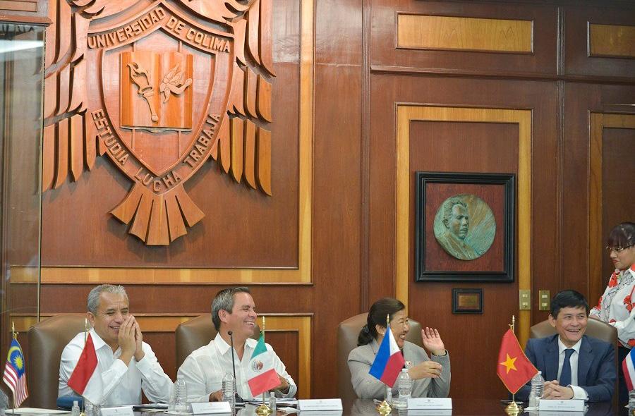 Sostuvieron una reunión de trabajo la Universidad de Colima y el Comité de la Asociación de Naciones del Sudeste Asiático (ASEAN), para establecer relaciones de cooperación con el Comité ASEAN de la Ciudad de México y mejorar el intercambio académico y cultural entre la universidad, Colima, y los países que conforman el comité asiático: Filipinas, Indonesia, Vietnam, Tailandia y Malasia.
