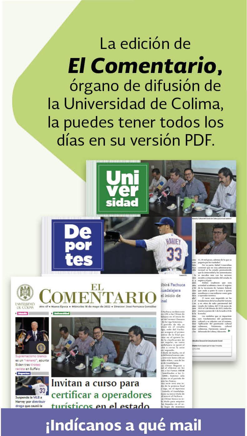 Así pues, el futuro ya está aquí, y nos toca ahora descubrirlo y aprovecharlo de la mejor manera, generando esa masa crítica que las sociedades requieren para poder caminar a la par del concierto científico y tecnológico mundial, por las generaciones actuales y venideras. *Profesor e investigador de la Facultad de Contabilidad y Administración del campus Tecomán de la Universidad de Colima, docente en las maestrías en Transformación Digital y en Alta Dirección de la misma institución.