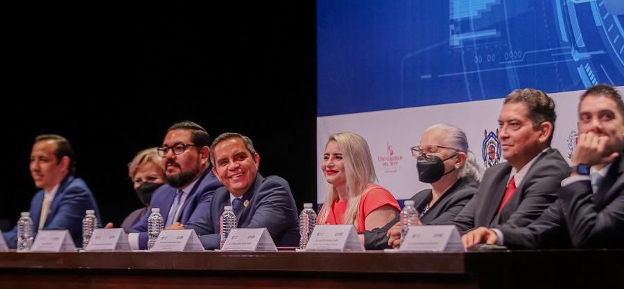 Estuvieron en el presídium Joel Nino, secretario general de la institución; Martha Magaña, coordinadora general de Docencia; Juan José Contreras, coordinador general de Tecnologías de Información; Camilo García, presidente de la FEC; y Enrique Cárdenas, director del Centro Universitario de Investigaciones Jurídicas.