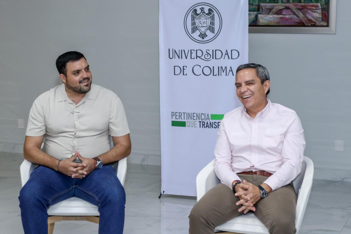 El Rector de la Universidad de Colima, Christian Jorge Torres Ortiz Zermeño recibió la visita de los presidentes municipales electos de Ixtlahuacán, Rafael Verduzco Mendoza y de Tecomán, Armando Reyna Magaña, en la sala de protocolo de Rectoría.