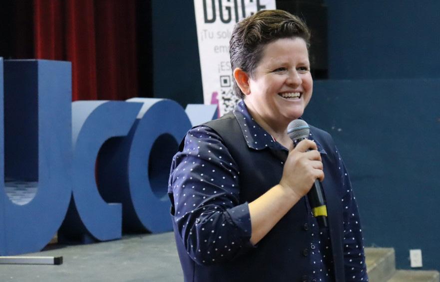 La maestra Carolina Venegas Ochoa, presidenta de la FEUC, elogió la colaboración con la DGICE en la realización de este diplomado, que forma parte de la formación continua dirigida a los egresados de la UdeC.