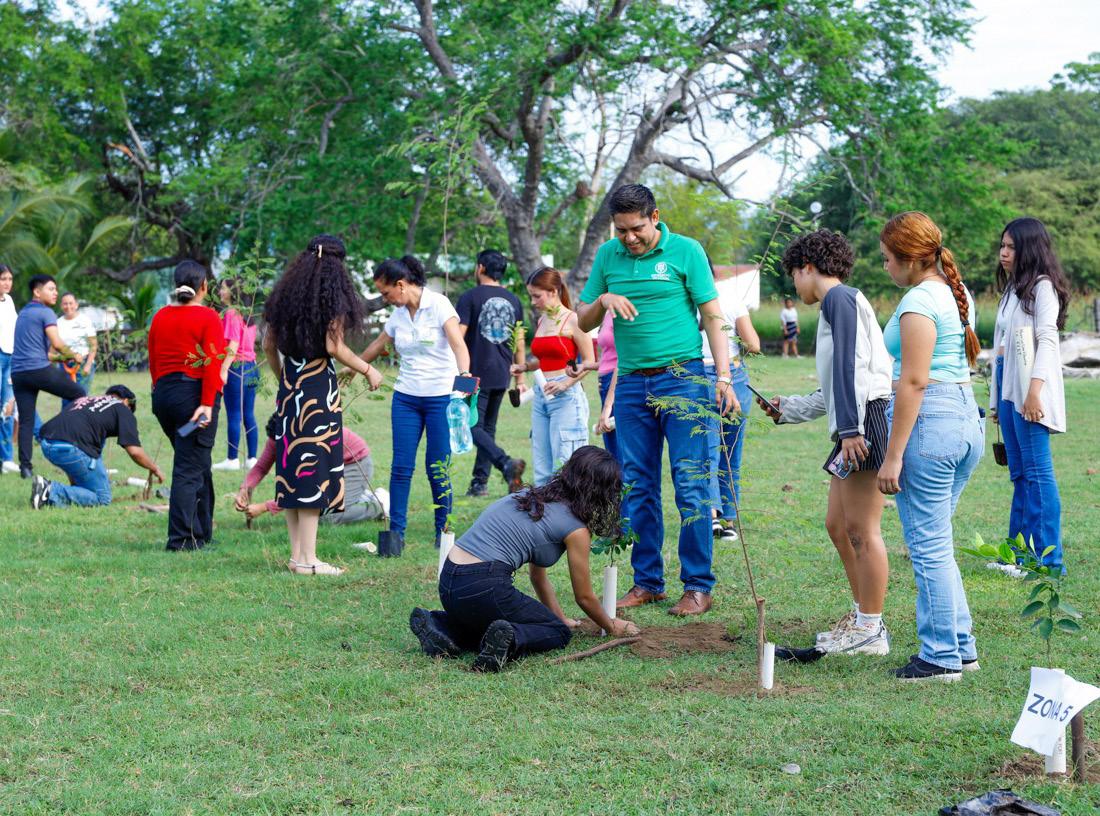 Con la participación de más de 450 estudiantes de las facultades de Contabilidad y Administración, Ciencias Biológicas y Agropecuarias, Medicina Veterinaria y Zootecnia, así como del Bachillerato 35 del Campus Tecomán, se realizó la siembra de 500 árboles en el área de potreros de la posta zootecnia de la FMVZ y en las instalaciones del Bachillerato 35.