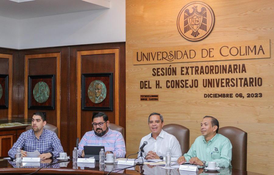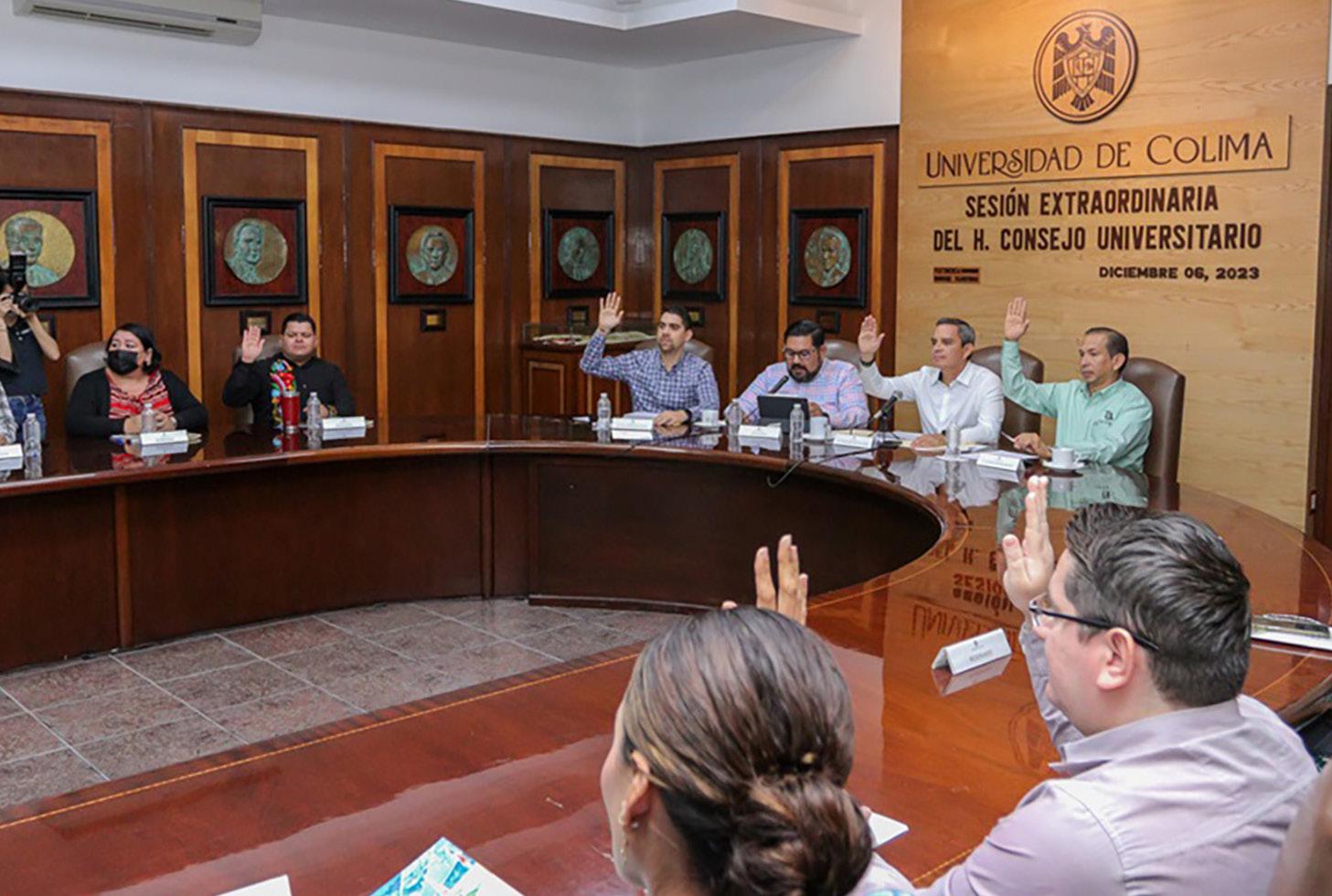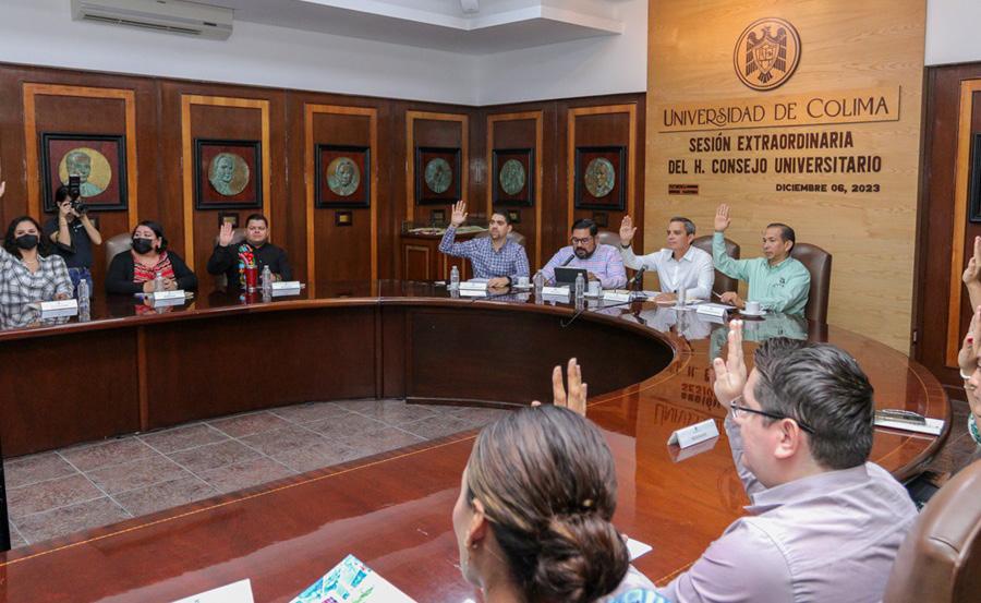 En sesión extraordinaria realizada de manera híbrida, este miércoles (6), el Consejo Universitario aprobó 2 nuevos programas de posgrado que responden a las necesidades actuales, aprobó la comisión de glosa para el informe de labores 2023 que dará el Rector este 15 de diciembre y también el plan de arbitrios, el Presupuesto de Egresos 2024 y el plan de austeridad y racionalidad presupuestal de la Universidad de Colima.
