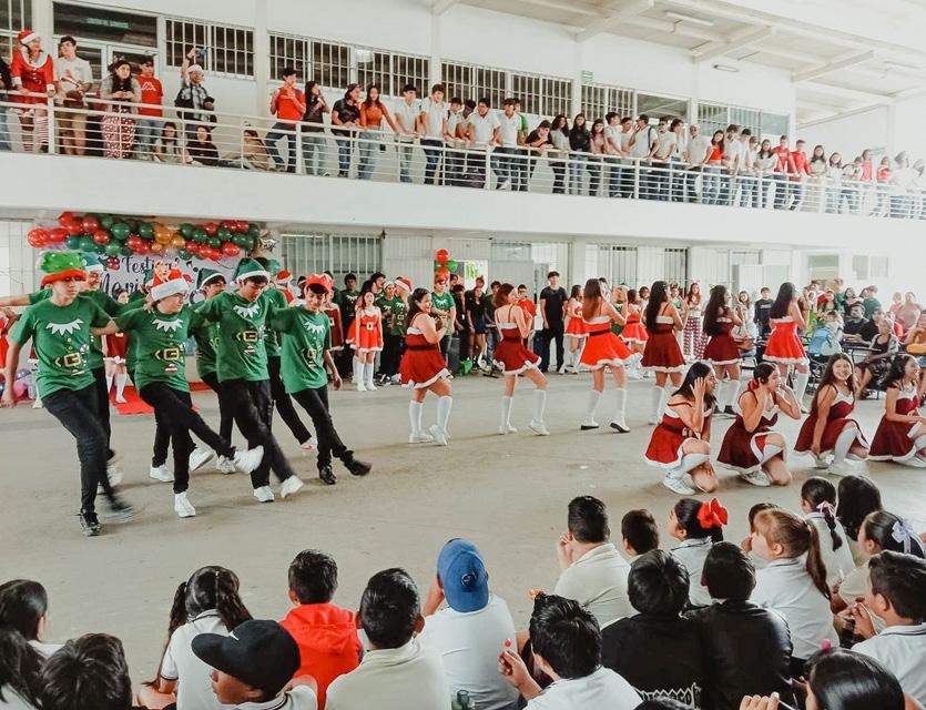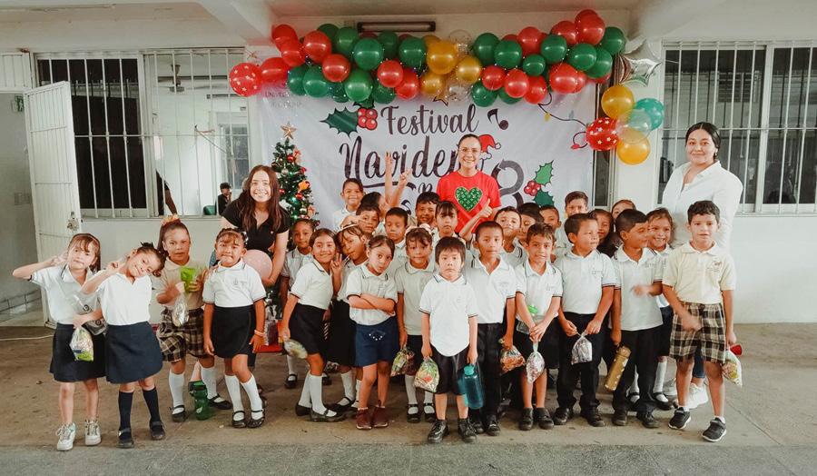 Con la colaboración de alumnos, administrativos y docentes, el Bachillerato 8 del Campus San Pedrito, en Manzanillo, realizó su Festival Navideño 2023, en el que tuvo como invitados especiales a 120 niñas y niños de la Escuela Primaria “Cristóbal Colón”.