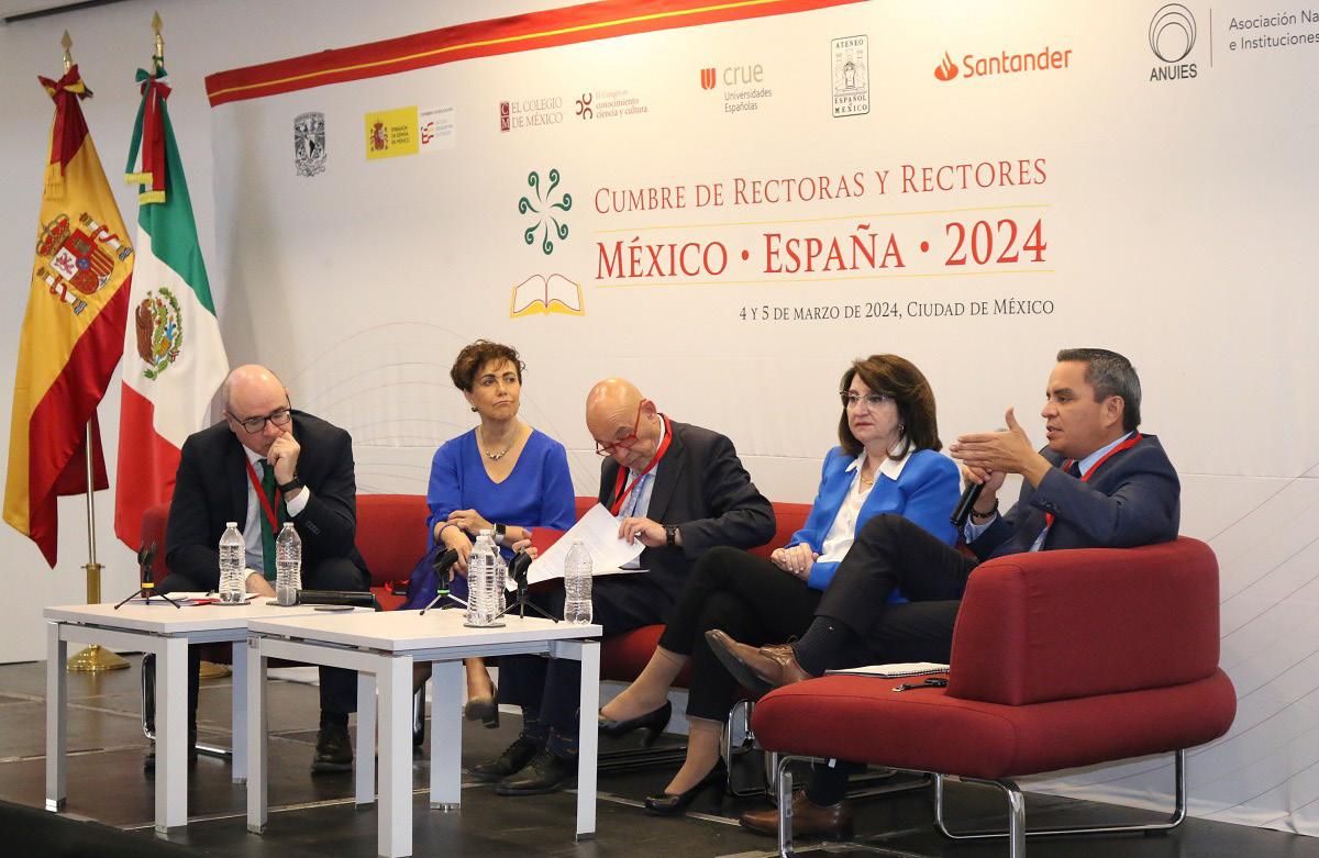 Al participar en la sesión “Movilidad académica y cooperación cultural entre México y España”, durante el segundo día de trabajo de la Cumbre de Rectores y Rectoras México España 2024, el Rector Christian Torres Ortiz Zermeño habló de la experiencia de más de 30 años de la Universidad de Colima en el tema de internacionalización, no sólo en la movilidad de estudiantes y docentes, sino en el enriquecimiento institucional con profesores visitantes y en proyectos académicos con otras universidades del mundo.
