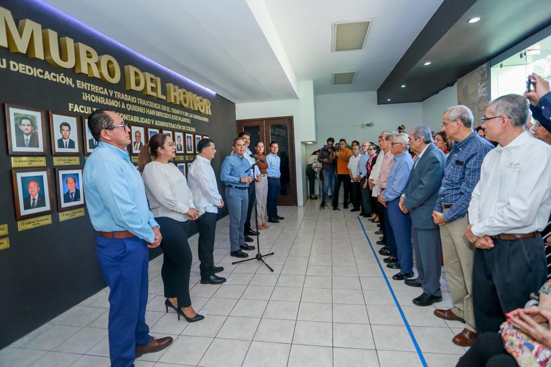 El Rector de la Universidad de Colima (UdeC), Christian Jorge Torres Ortiz Zermeño, develó el Muro del Honor de las y los ex directores de la Facultad de Contabilidad y Administración de Colima, en el vestíbulo del Auditorio “Carlos de la Madrid Virgen”. Esto como parte del 63 aniversario de dicho plantel.