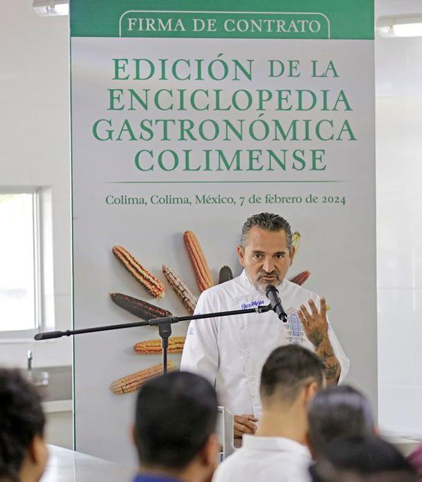 El Rector de la Universidad de Colima (UdeC), Christian Jorge Torres Ortiz Zermeño, y el chef Nico Mejía, firmaron el contrato de coedición digital del primer tomo de la Enciclopedia Gastronómica Colimense. La firma se realizó en el laboratorio de alimentos y bebidas de la Facultad de Turismo de esta Casa de Estudios, ubicada en el Campus Villa de Álvarez.