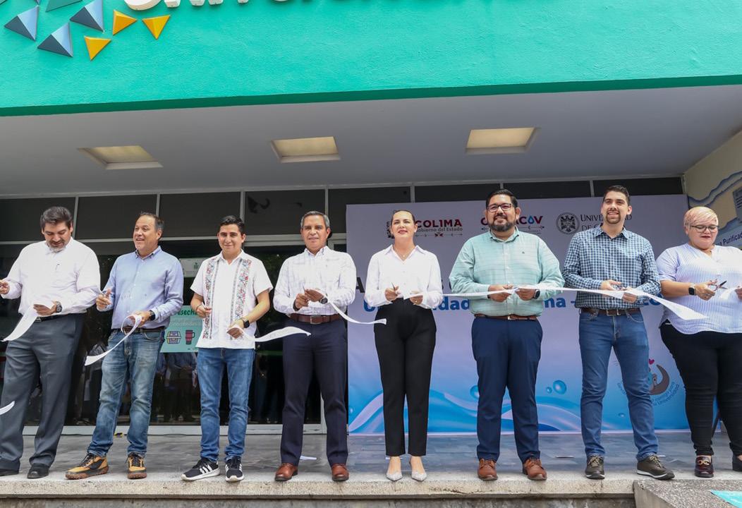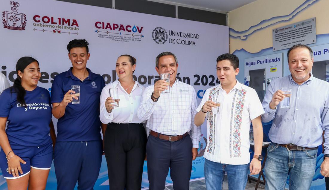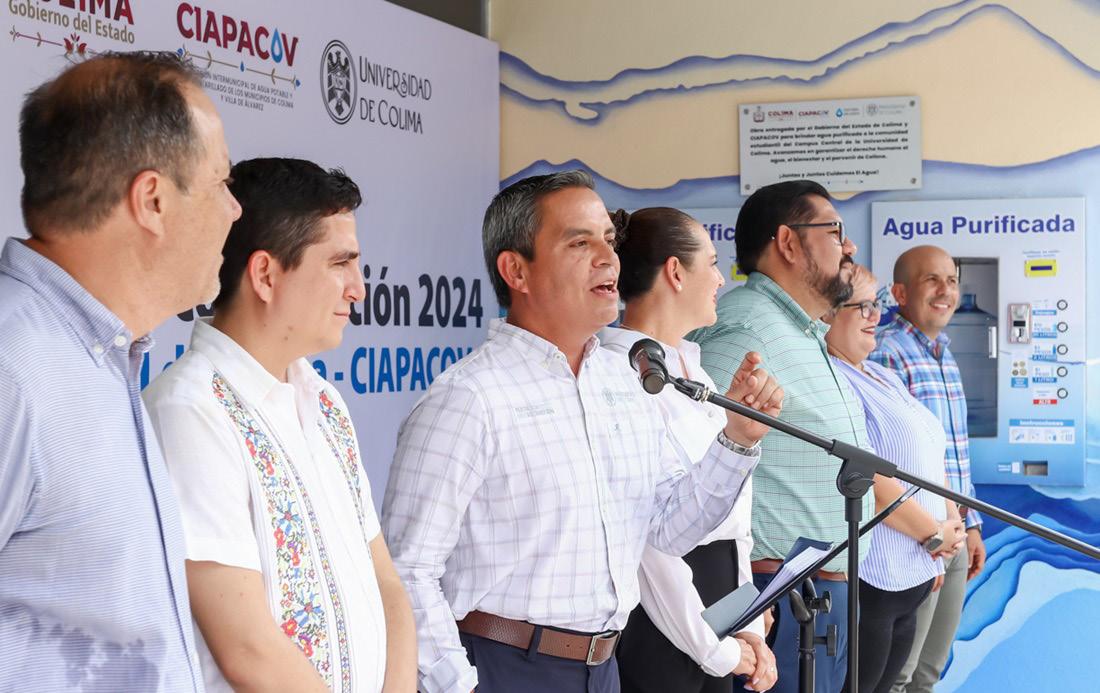 Christian Jorge Torres Ortiz Zermeño, Rector de la Universidad de Colima (UdeC), inauguró la Planta Purificadora de Agua ubicada en la entrada principal de la Plaza de Servicios Estudiantiles del Campus Central, acompañado por varios de sus funcionarios y por el director de Ciapacov, Vladimir Parra Barragán.