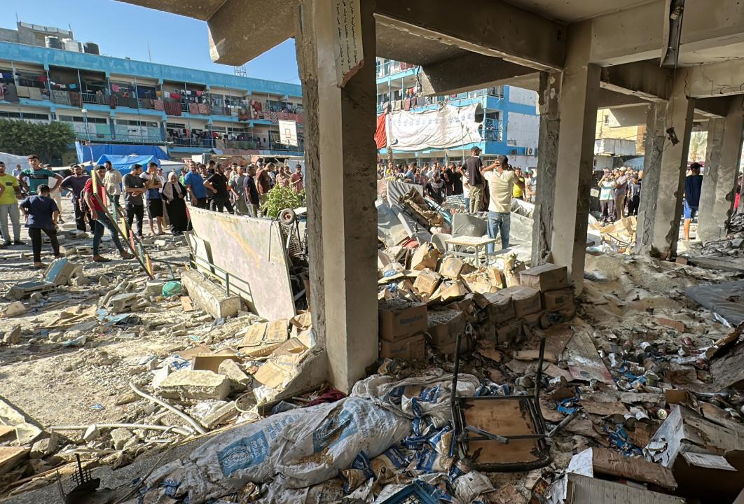 Hacia las 4:20 de la tarde hora local de este jueves, los servicios de la Defensa Civil gazatí alertaron de un ataque contra la escuela, en la que miles de personas -5 mil, según la Oficina de Medios del Gobierno del enclave- se refugiaban de la guerra.