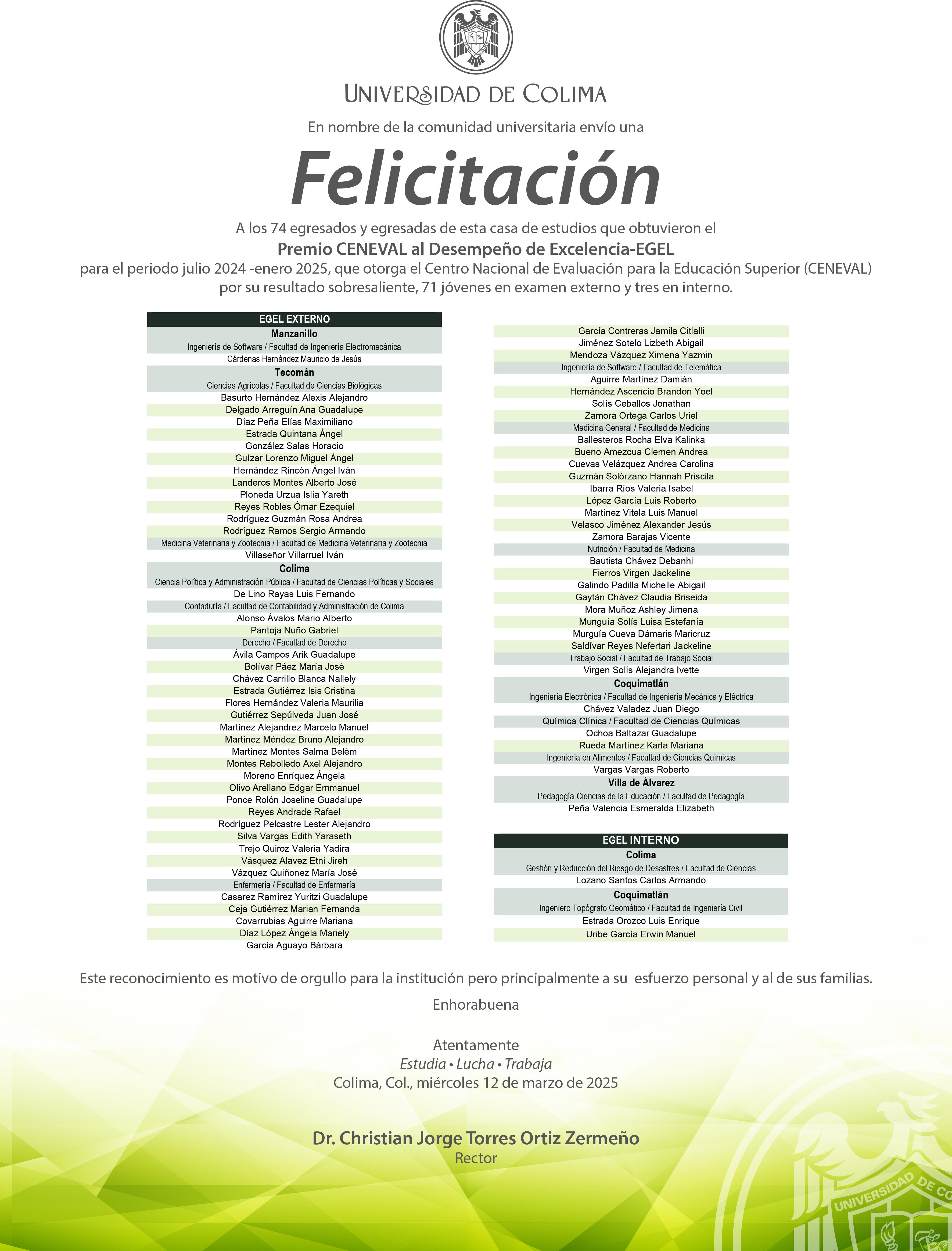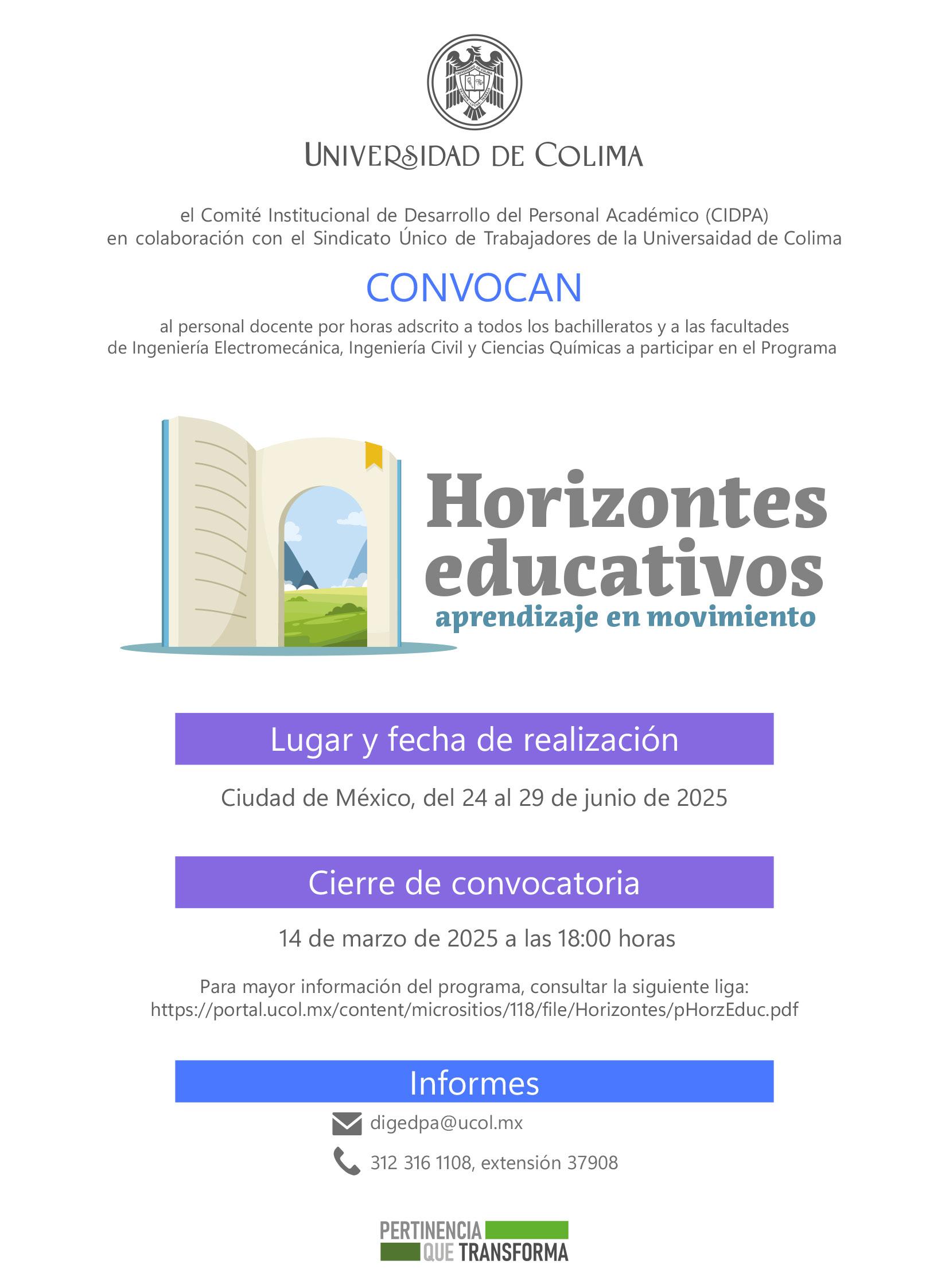 Para más información, pueden comunicarse al correo electrónico dgice@ucol.mx o al teléfono 312 31 611 59, extensión 33801.