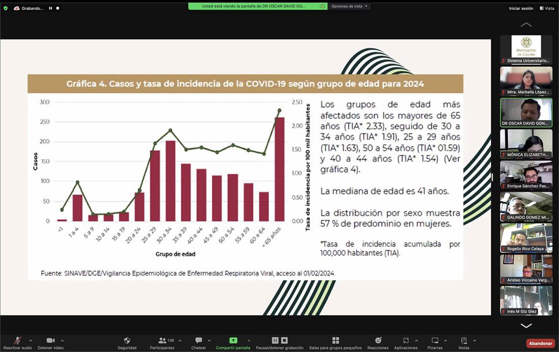 La Universidad de Colima (UdeC) llevó a cabo la conferencia virtual “Actualización de las medidas de prevención de Covid-19”, como parte de la capacitación permanente de los Comités de Salud de la institución. La conferencia estuvo a cargo del doctor Oscar David González Andrade, jefe de la Unidad de Vigilancia Epidemiológica Hospitalaria del Hospital Materno Infantil.