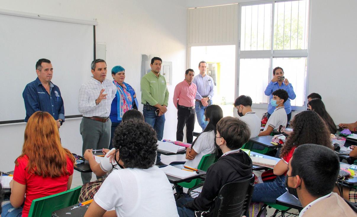 El Rector de la Universidad de Colima, Christian Torres Ortiz Zermeño, realizó una gira de trabajo por algunos planteles del Campus Tecomán, donde inspeccionó los avances de obra que se realizan para rehabilitar los edificios dañados por el sismo del pasado mes de septiembre de 2022 y conversó además con alumnos y directivos de esa delegación.