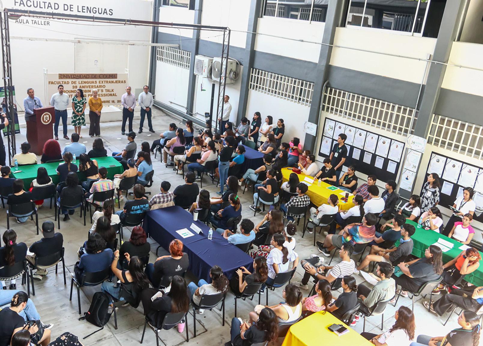 Como parte de los festejos por el 39 aniversario de la Facultad de Lenguas Extranjeras (FLEX), Christian Jorge Torres Ortiz Zermeño, Rector de la Universidad de Colima, participó en las micro charlas denominadas Let´s talk about being profesional (Hablemos de ser profesionales), en la explanada de este plantel ubicado en la delegación Villa de Álvarez.