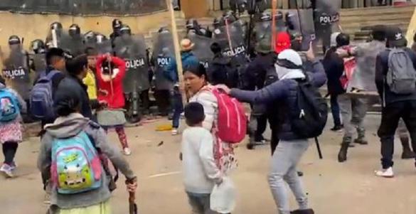 Una protesta en el centro de Bogotá de indígenas emberas desplazados por el conflicto, que reclaman atención y una mejora de sus condiciones de vida, acabó este miércoles (19) con fuertes disturbios con la Policía y un saldo de 24 heridos, 11 de ellos policías.