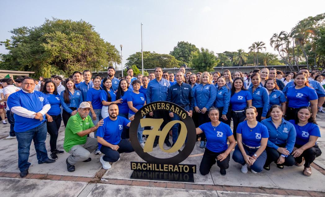 Con la toma de una fotografía grupal en la explanada del plantel, encabezada por el Rector de la Universidad de Colima, Christian Torres Ortiz Zermeño, iniciaron los festejos por el 70 aniversario del Bachillerato 1. En la actividad participaron estudiantes, docentes, personal administrativo y directivos.