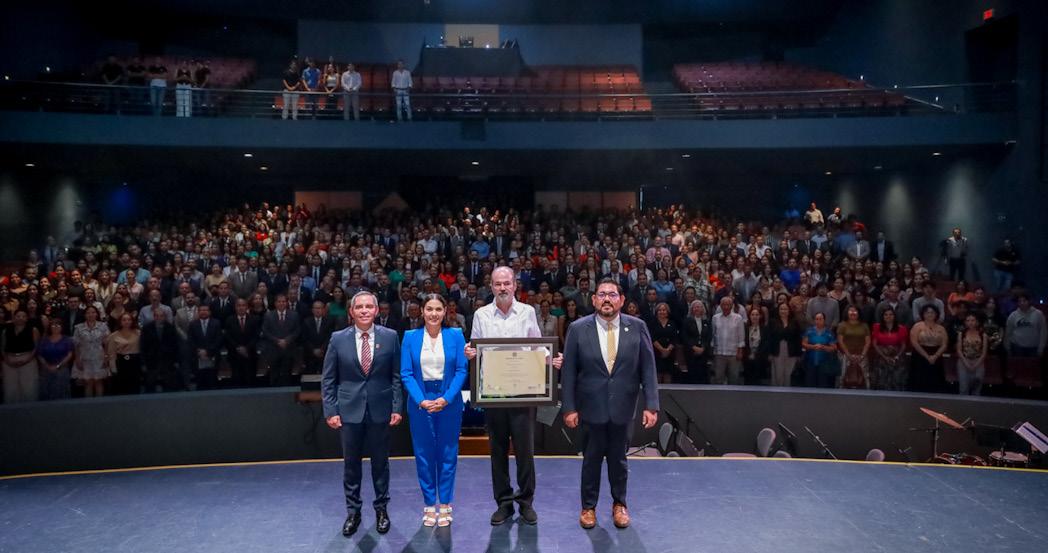 A la ceremonia, realizada en el Teatro Universitario “Gral. Pedro Torres Ortiz”, asistieron Indira Vizcaíno Silva, gobernadora del estado, exrectores, representantes de los sectores institucionales, coordinadoras y coordinadores generales, delegada y delegados, directores generales, directores y directoras de planteles, así como estudiantes y docen-