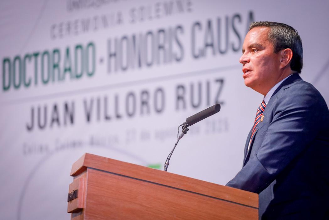 Ante el escenario actual -reflexionó el Rector-, donde el conocimiento crece de manera acelerada, pero también corre el riesgo de fragmentarse, “nuestra Universidad asume la tarea de integrar saberes, fomentar el diálogo entre disciplinas y fortalecer la confianza social en el conocimiento académico y científico. En este esfuerzo, contar con una de las voces más influyentes de la literatura y el pensamiento contemporáneo en lengua española, es motivo de aliento, porque su obra y ejemplo nos recuerdan que la curiosidad, la lectura y la reflexión crítica siguen siendo puentes indispensables para comprender nuestro tiempo”.
