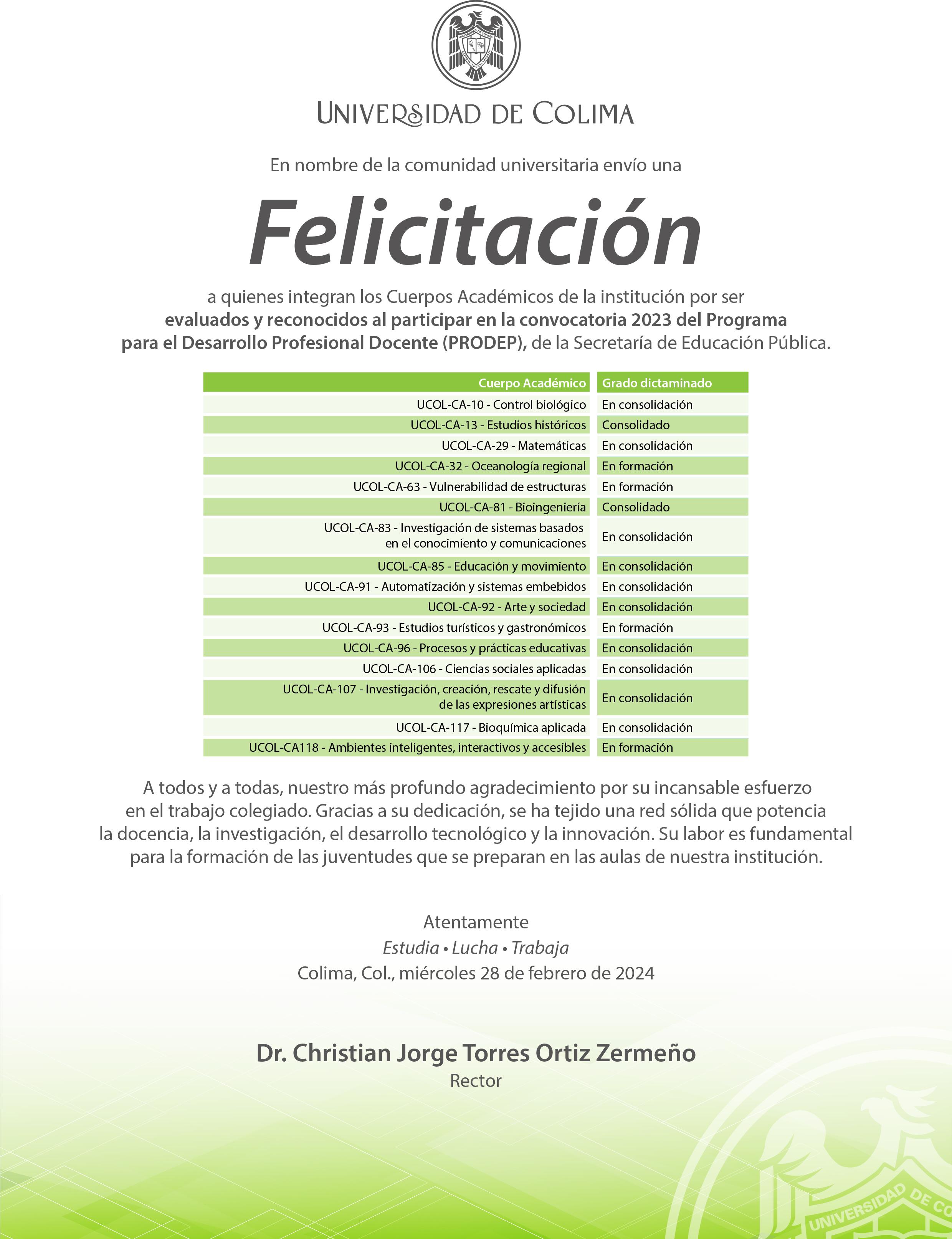 La UdeC tiene como función principal, comentó el Rector en su intervención, formar al personal técnico, profesional y con el máximo grado, que contribuya al desarrollo de nuestro entorno. “En este acto, es justo reconocer las aportaciones de profesores y personal de los planteles que acompañaron a los y las estudiantes a lo largo de su formación”.