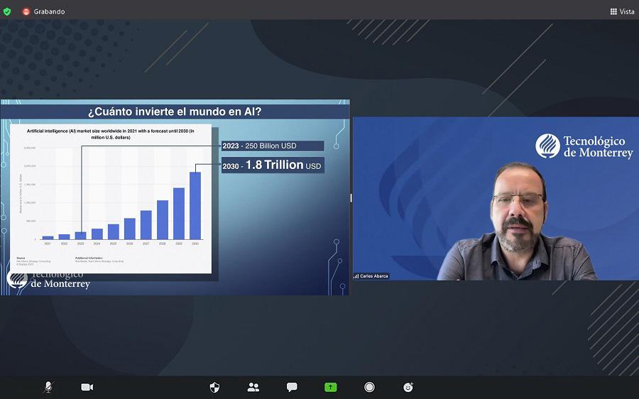 ne que ver con los puestos de trabajo, que ella va a reemplazar, “lo que puede cambiar el curso de la historia, pues todas las tecnologías han reemplazado alguna habilidad humana, pero en el caso de la IA se trata de una tecnología capaz de dominar el protocolo base de la inteligencia humana, que es el lenguaje”. La segunda perspectiva se relaciona con la frecuencia que se aborda el tema de la IA en la internet, en foros, plataformas y redes sociales. La tercera es la gran cantidad de dinero que se invierte mundialmente en este tipo de inteligencia; en 2023 la industria habrá invertido 250 billones de dólares americanos y, para el 2030 se estima un mercado de 1.8 trillones de dólares, “cifras que no se han visto en ninguna revolución tecnológica anterior”.