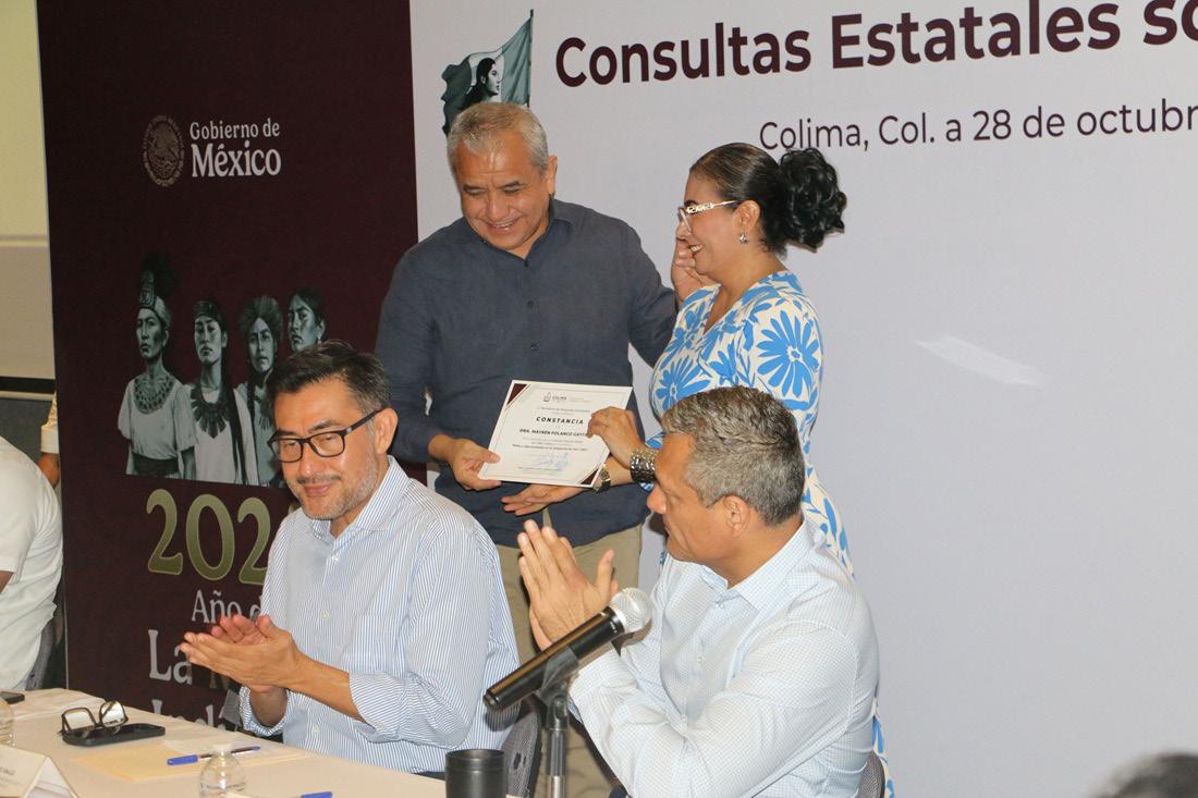 El evento contó con la participación de Alberto Uribe Camacho, coordinador regional Pacífico de la Secretaría de Economía del Gobierno de México, quien transmitió el mensaje de la dependencia federal y reafirmó el compromiso del Gobierno con la integración de las voces locales al proceso nacional de consulta.
