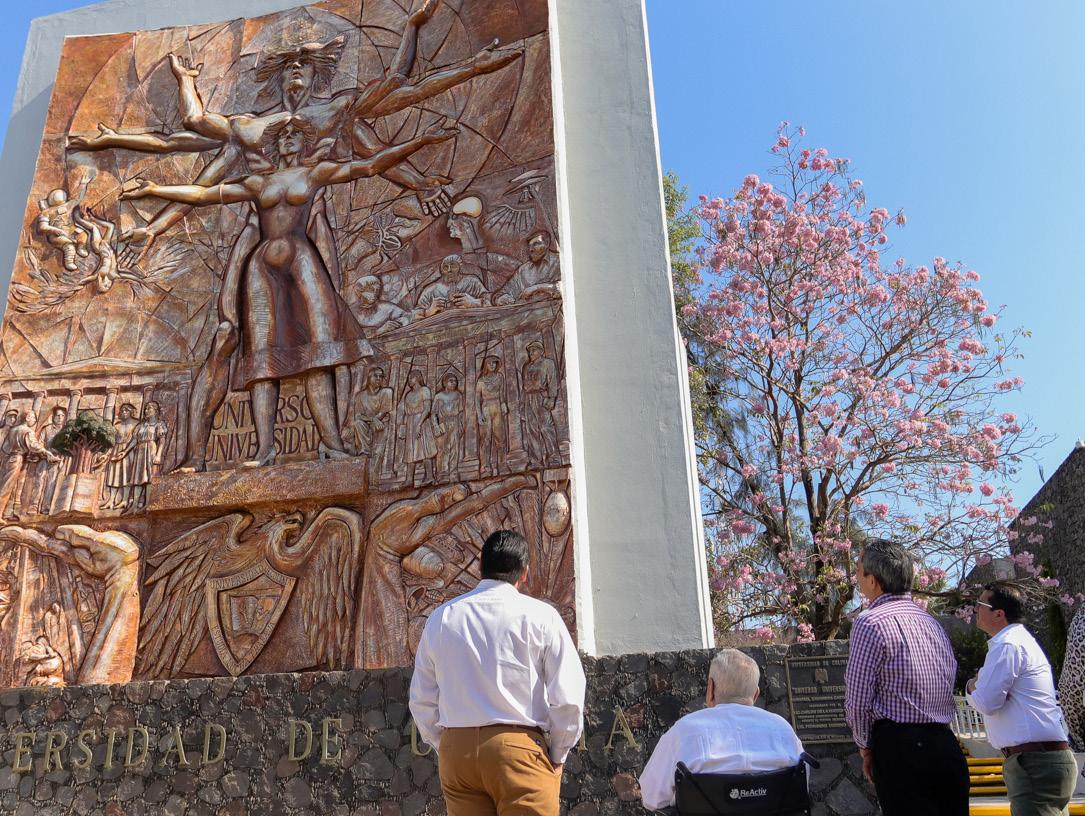 Primero conoció el trabajo de restauración del mural Universo / Universidad, que se encuentra en la entrada principal al Campus Colima, por la Avenida Universidad. Esta pieza de Rafael Zamarripa, realizada en 1996, con 80 metros cuadrados, 14 módulos y 12 metros de alto, fue rehabilitada por Gloria Castro Hernández y Sofía Hernández González, del Departamento de Restauración de esta Casa de Estudios.
