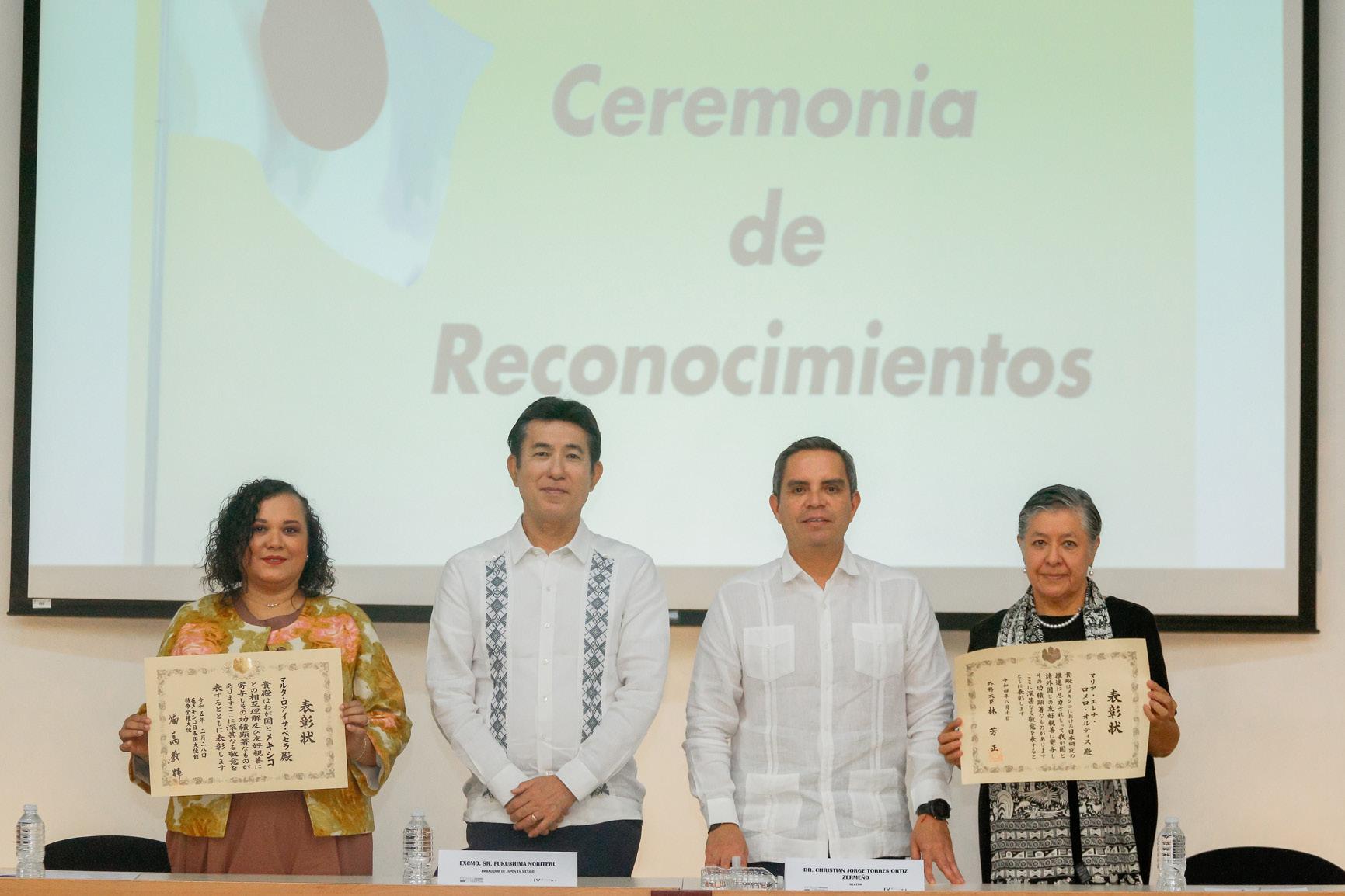 En su intervención, el Rector Christian Jorge Torres Ortiz Zermeño las felicitó y dijo que “esta distinción corona los esfuerzos que por décadas han dedicado a la investigación sobre este país, la cual ha contribuido al fortalecimiento de la cooperación solidaria y la entrañable amistad entre ambas naciones; el trabajo que han desarrollado ha sido clave para que la UdeC sea un referente nacional en los estudios de Asia-Pacífico, especialmente los dedicados a Japón”. Por lo anterior, continuó, “estamos orgullosos de la trascendencia de su labor y nos unimos al reconocimiento que hoy reciben, que más allá del logro académico, ha sido fundamental para el entendimiento bilateral y para fomentar el conocimiento de la cultura, la economía y la política japonesas entre sus estudiantes, lo que asegura un valioso legado para perpetuar las relaciones de amistad e intercambio”.