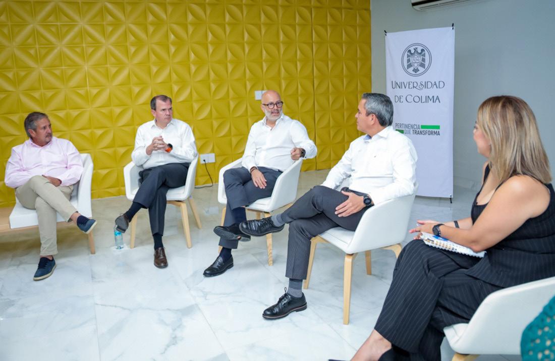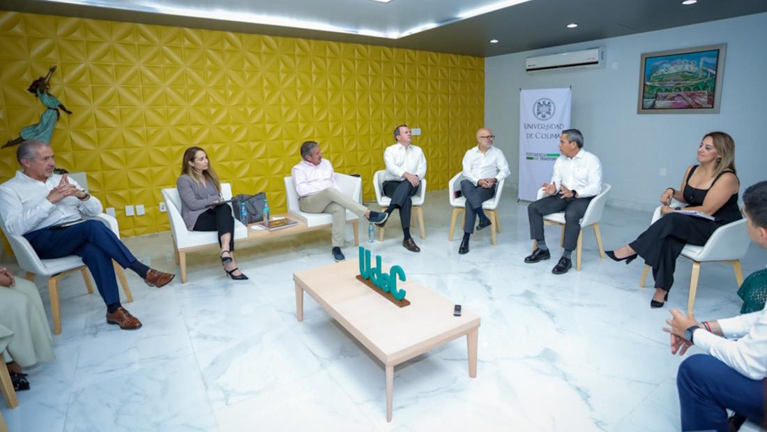 En una charla amena y abierta, Christian Jorge Torres Ortiz Zermeño, Rector de la Universidad de Colima (UdeC), recibió en el Salón Protocolo de Rectoría al director general de Grupo Financiero Santander México, Felipe García Ascencio, quien acudió acompañado por varios directivos de este banco.