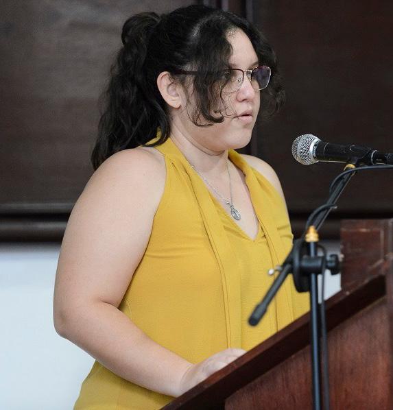 Nancy Paulina Ramos García, estudiante de Psicología, habló en representación de las y los beneficiados. Dijo que “como una persona que estudia y trabaja es una felicidad recibir este apoyo; más que nada, proporciona un sentimiento de alivio recibir un correo en el que se menciona que salí beneficiada y automáticamente pensamos en qué lo usaremos, ya sea transporte o comida. Les pido que pongamos nuestro empeño en mejorar cada día en nuestras vidas estudiantiles, pues aquí tenemos la prueba de que todo esfuerzo rinde frutos”.