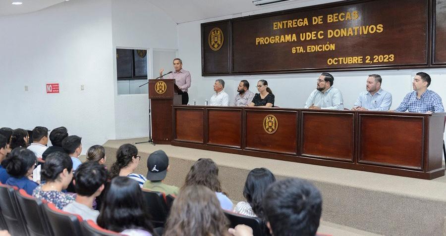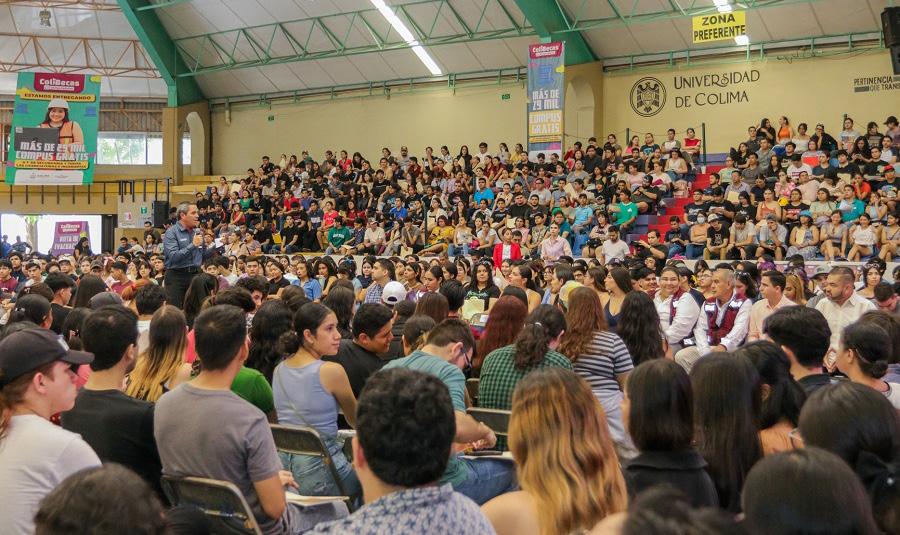 n el auditorio de la Facultad de Ciencias de la Educación, se llevó a cabo la sexta entrega de las becas Universidad de ColimaDonativos, que benefició en esta ocasión a 100 estudiantes de licenciatura de los Campus Manzanillo, Tecomán, Colima, Coquimatlán y Villa de Álvarez.