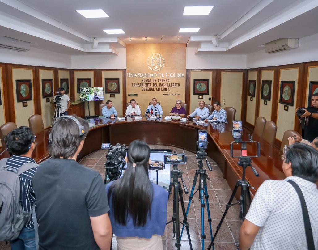 En una rueda de prensa celebrada en la Sala de Juntas de la Rectoría, Christian Jorge Torres Ortiz Zermeño, Rector de la Universidad de Colima (UdeC) anunció el lanzamiento de la convocatoria para aspirantes al nuevo Bachillerato General en Línea. Con ese programa, pionero de su tipo en los bachilleratos del país, dijo el Rector, nuestra Casa de Estudios busca contribuir a evitar el rezago y ampliar la cobertura educativa estatal y en el país.