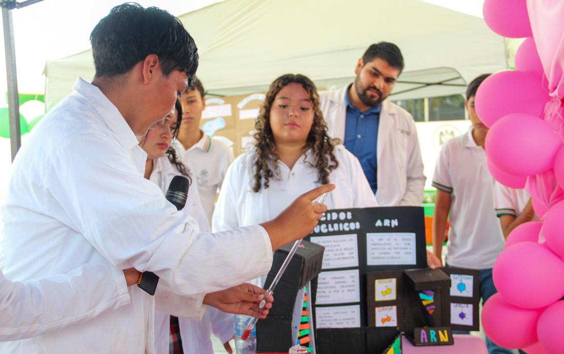 ra el desarrollo integral de los estudiantes: “La relevancia de esta feria radica en que permite a los jóvenes materializar los conocimientos teóricos que adquieren en el aula y vincularlos con problemáticas y aplicaciones tangibles en la vida diaria”.