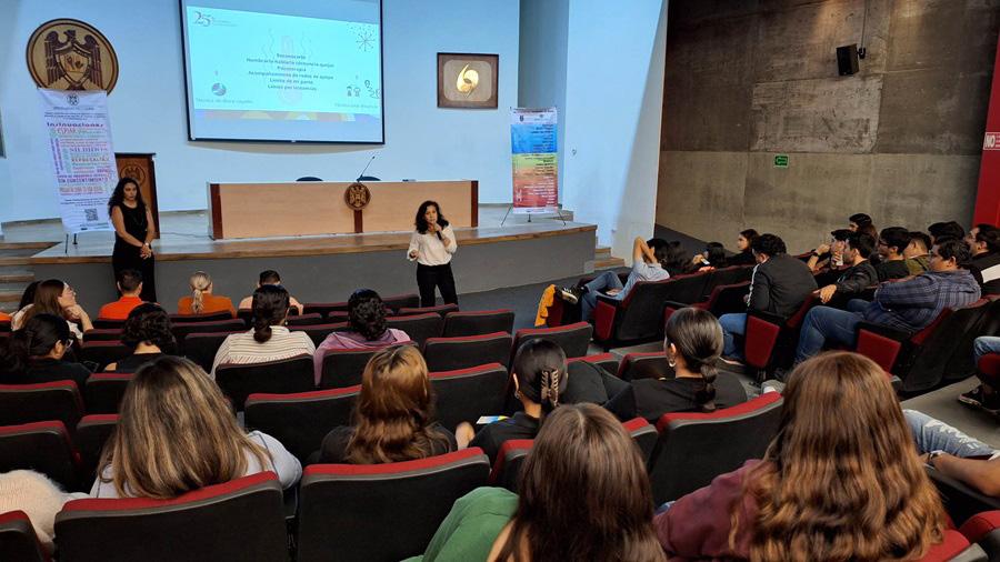 En el marco de la conmemoración por el Día Internacional de la Eliminación de la Violencia contra la Mujer, las facultades de Derecho y de Ciencias Políticas y Sociales, del Campus Norte de la Universidad de Colima, realizaron 2 conferencias y un conversatorio. La primera conferencia fue “Violencia en el noviazgo”, impartida por la doctora Mariana Villanueva López y la maestra María de Lourdes Ramírez Camacho, integrantes de la Unidad para la Atención a la Discriminación y la Violencia de Género de la Universidad de Colima.