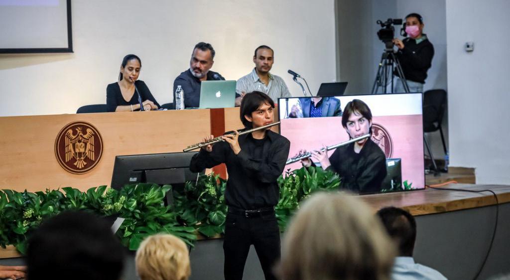 Alfredo Gerardo Mendoza, del Departamento de Artes Visuales, compartió un corto creado por Édgar, un joven con Asperger, quien a pesar de tener un inicio complicado con sus estudios logró terminar una carrera universitaria y realizar un intercambio académico en España, en medio de la pandemia. Este hecho inspiró al joven universitario a crear y expresarse mediante un corto que le permitió concluir sus estudios. Gabriel, estudiante de flauta del Bachillerato de Música, interpretó una pieza musical durante este panel. Tras su intervención, su maestro Gregorio Torres contó a los presentes cómo llegó Gabriel al IUBA, al curso básico que ofrece la escuela, con una flauta que “es modesta, pero ha hecho maravillas y desarrollado un sonido que no es fácil con un instrumento que es modesto”.