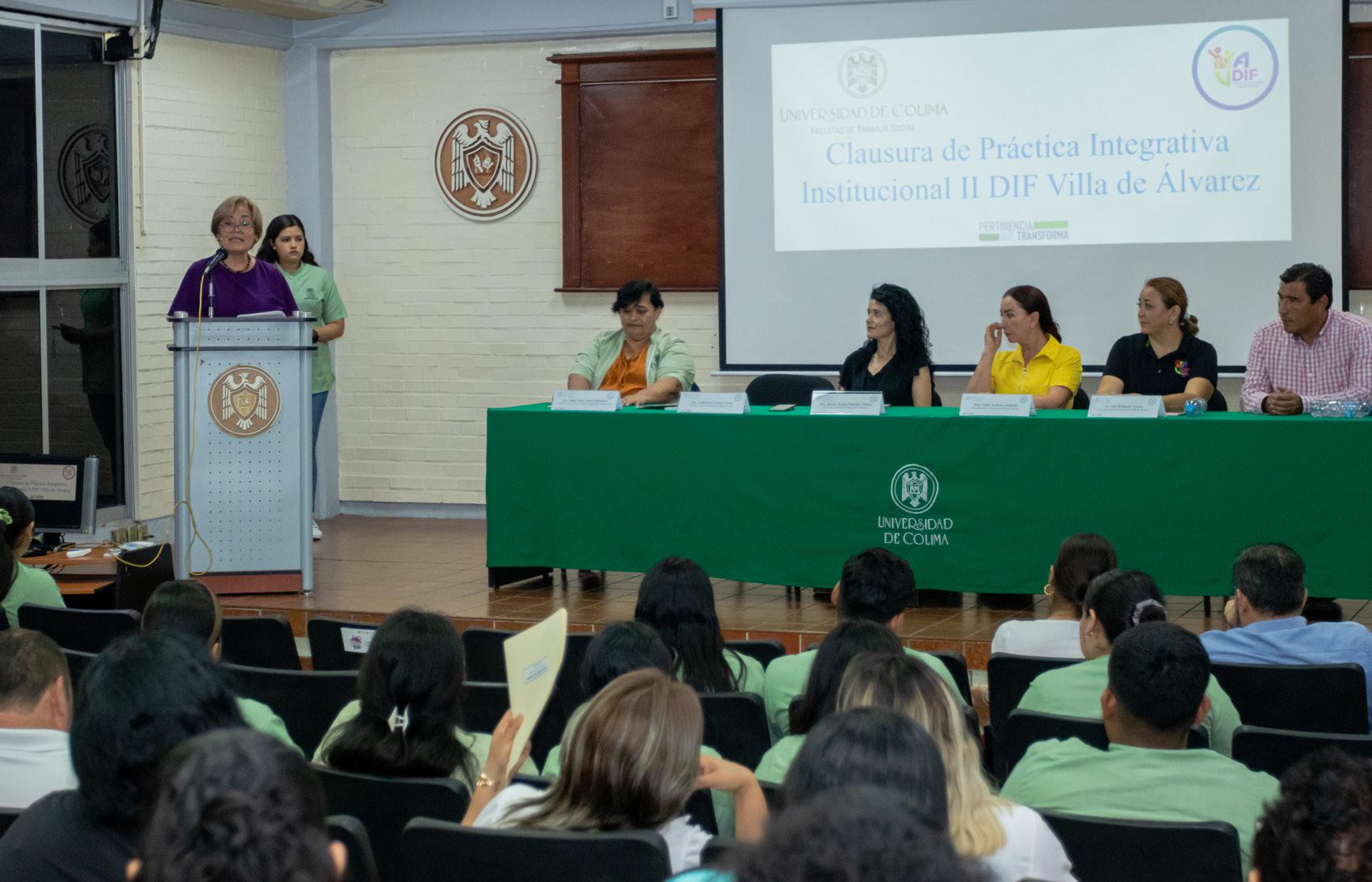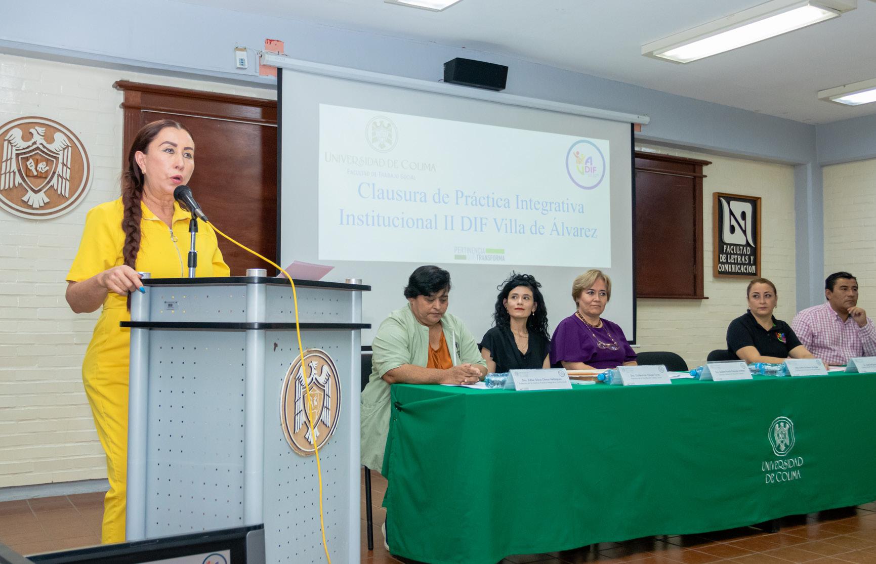 Un grupo de estudiantes de la Facultad de Trabajo Social de la Universidad de Colima presentó los resultados de proyectos de la materia de Práctica Integrativa Institucional II, que realizaron en el DIF Municipal de Villa de Álvarez de agosto 2022 a junio 2023. Durante la clausura, Esther Gutiérrez Andrade, presidenta de ese municipio, destacó que esta intervención les ha permitido tener resultados a corto plazo.