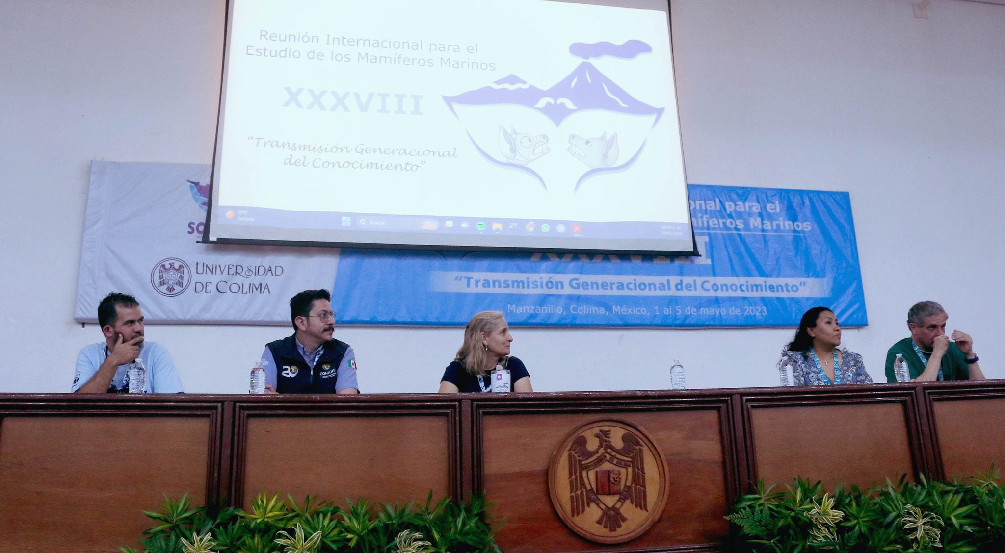 En el marco de la 38 Reunión Internacional para el Estudio de los Mamíferos Marinos que organizó la Sociedad Mexicana de Mastozoología Marina (somemmA), en el Centro de Tecnología Educativa del Campus El Naranjo de la Universidad de Colima, en Manzanillo, se llevó a cabo el panel “Compartiendo los mares: barcos y ballenas”.
