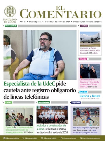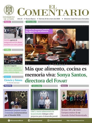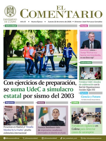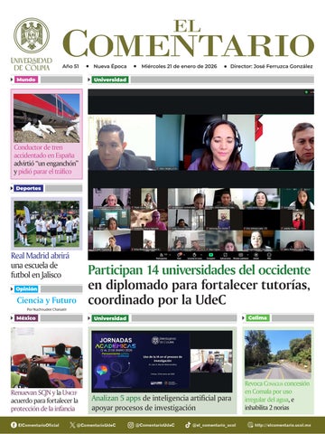 Por último, el delgado de Colima, Juan Diego Gaytán, compartió que esta estrategia obliga a todos y todas a alinearse a estos nuevos criterios. “Hay varias instancias que han participado activamente y es importante que conozcamos estos lineamientos para que nos ayuden a generar proyectos que sean rentables no sólo en lo financiero, sino en la interacción con la sociedad”. El documento está en https:// portal.ucol.mx/content/docrevista/ documento_1401.pdf