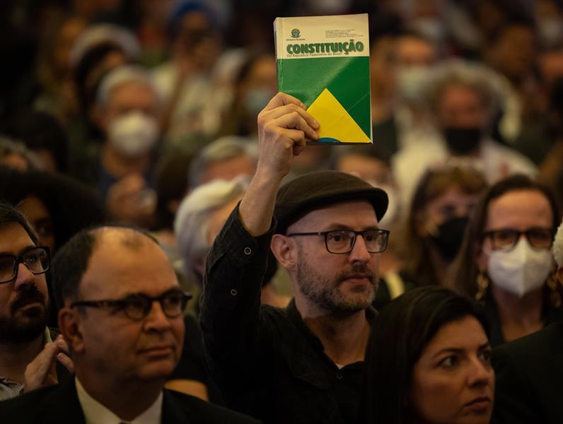 “La depredación de las sedes de los 3 poderes solo sirvió para cubrir de vergüenza nuestra patria. Estamos aquí para exigir, sin medias palabras, que los responsables por los crímenes de barbarie sean investigados, juzgados y castigados dentro de la ley”, manifestó el rector de la USP, Carlos Gilberto Carlotti. El acto de este lunes (9) recordó a otro similar que tuvo lugar el pasado 11 de agosto, cuando también leyeron un manifiesto con más de un millón de firmas en defensa de la democracia, en medio de la feroz campaña de descrédito encabezada por el entonces presidente Jair Bolsonaro contra el proceso electoral.
