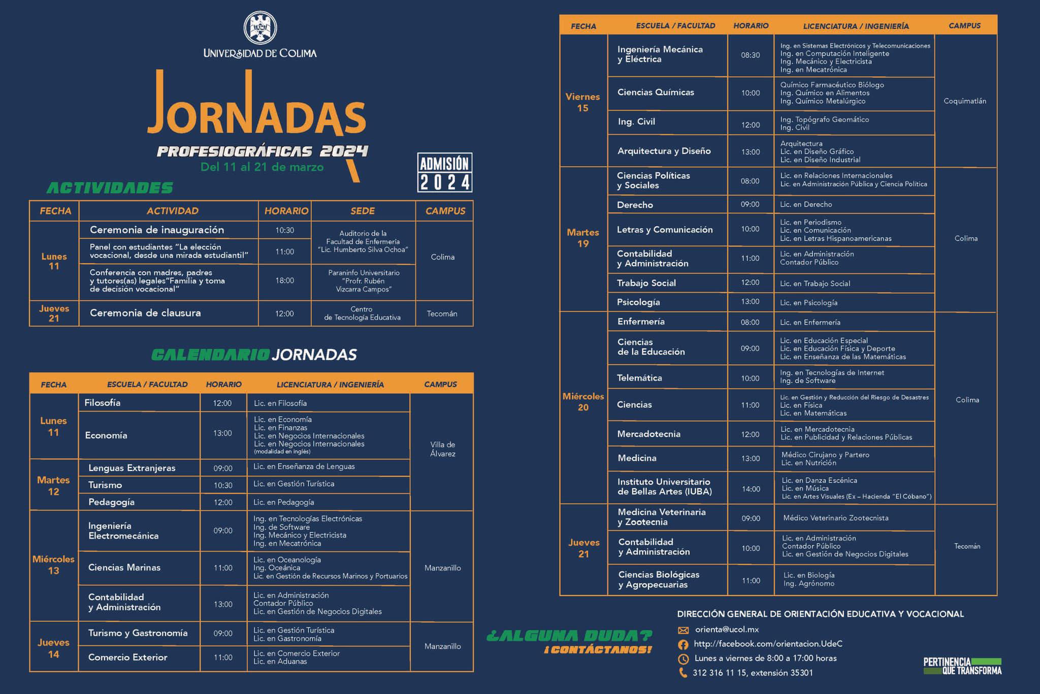 Las Jornadas Profesiográficas 2024 se realizarán en los Campus de Colima, Villa de Álvarez, Coquimatlán, Tecomán y Manzanillo hasta el próximo 21 de marzo.