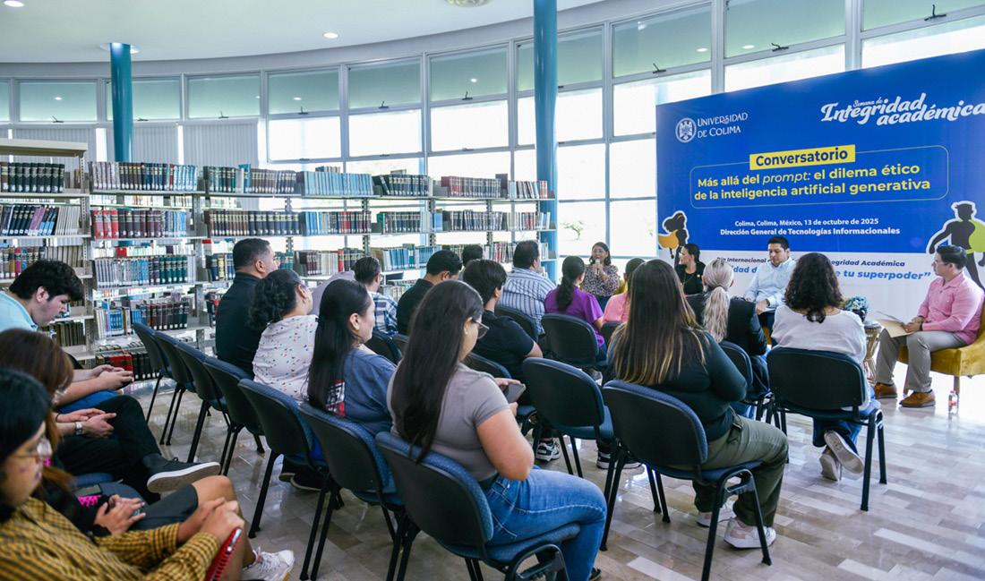 Desde la biblioteca del Campus Norte de la Universidad de Colima (UdeC), se llevó a cabo la inauguración de la Semana por la Integridad Académica: “Integridad día a día, descubre tu superpoder”. Como acto inaugural, se realizó el conversatorio “Más Allá del Prompt: el dilema ético de la Inteligencia Artificial Generativa (IAG)”.