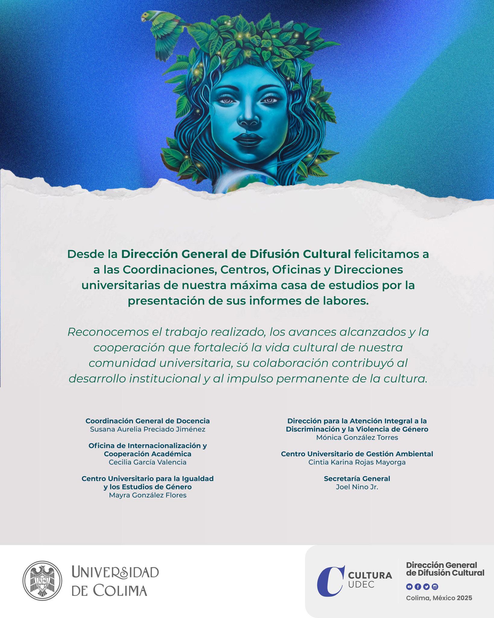 En un evento celebrado en el Paraninfo Universitario, la doctora Cintia Karina Rojas Mayorga, directora del Centro Universitario de Gestión Ambiental (ceugea) de la Universidad de Colima (UdeC), rindió su informe de labores correspondiente a 2025, en el que destacó el trabajo colectivo realizado en materia de gestión ambiental, sostenibilidad, equidad y proyección futura de la Casa de Estudios. El informe fue atestiguado por el Rector Christian Jorge Torres Ortiz Zermeño, así como por directivos, funcionarias y funcionarios universitarios.